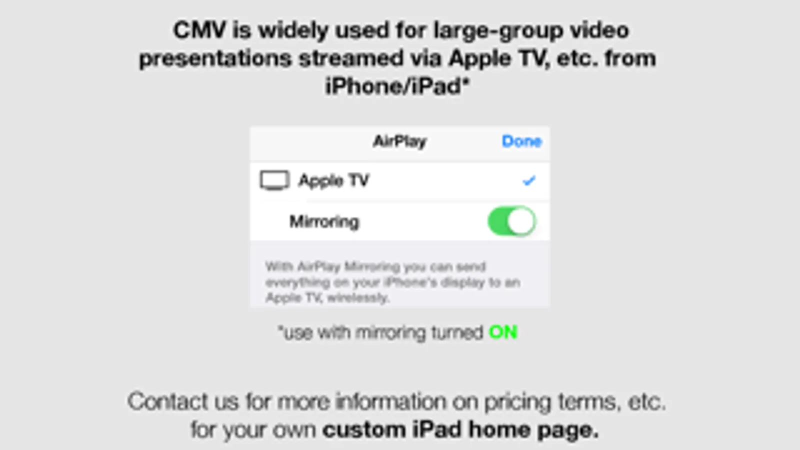 - AirPlay Mirroring: control your video on HDTV wirelessly from the palm of your hand for group presentations / video coaching / film sessions