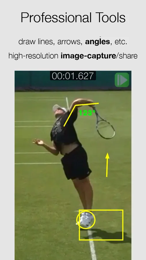 Slo-mo & frame-by-frame playback, Email+ full-quality HD video-sharing, AirPlay HDTV mirroring: Professional-Grade Video Analysis tools that area also EASY.