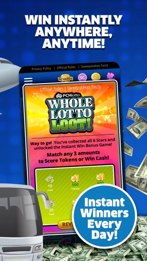 Win REAL money and instant rewards while on-the-go with PCH Lotto contest, jackpots, and nightly drawings!