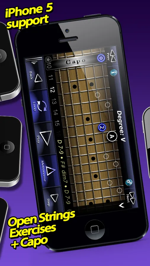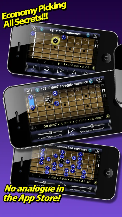 By having this app, you will not need to buy a numerous guitar video lessons. This app is also giving you a material to learn rhythm (3/4, 9/4, 5/4 measures etc), as well as musical theory material (modes, arpeggio, sequences).