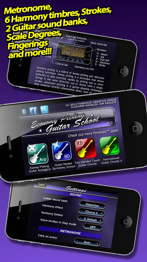 THIS FREE APP IS A COPY OF OUR ORIGINALLY RELEASED "ECONOMY PICKING GUITAR SCHOOL" APP, BUT WITH ABILITY TO SEPARATELY BUY EXERCISE PACKS AT YOUR CHOICE. Now everyone will be able to buy what he needs for training, which will save your money. Updates will be released as for the new free app, so for the old paid app.