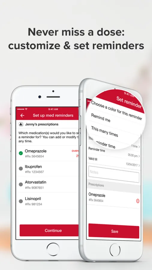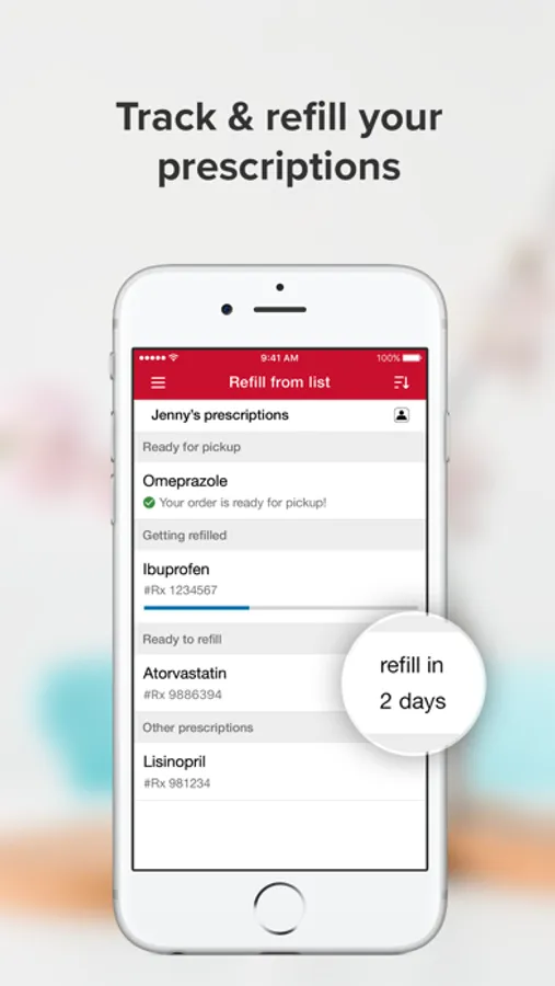 • Notifications — Opt in to receive instant notifications and texts reminding you when prescriptions are due for a refill or ready to be picked up