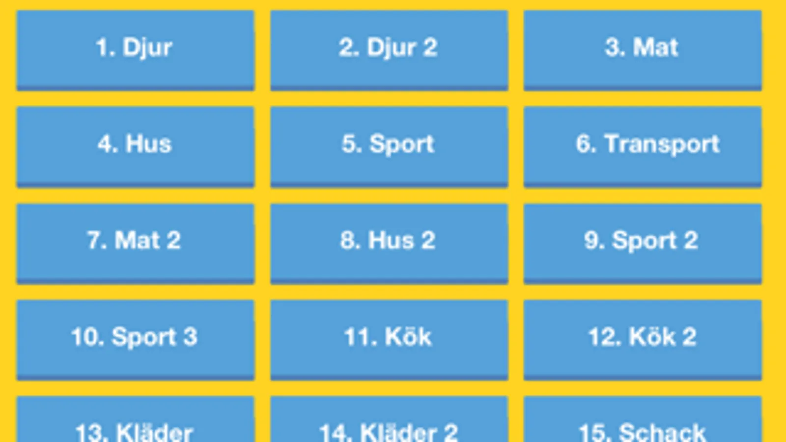 Svenska Ordspel is a word game to practice swedish words. The game has 33 levels and more than 250 photos and words to practice.