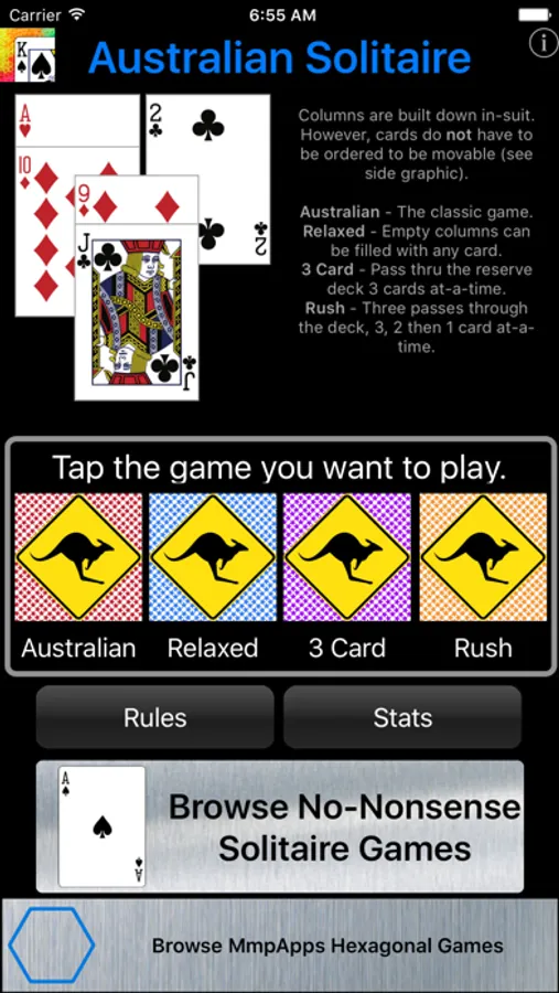 Classic Australian Solitaire with the no-nonsense MmpApps card game interface.