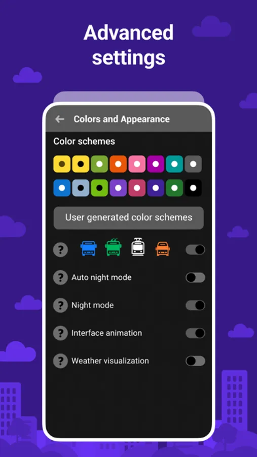 - Easy to use interface with personalization options including: online map, schedules, bus stop search, routes, etc.