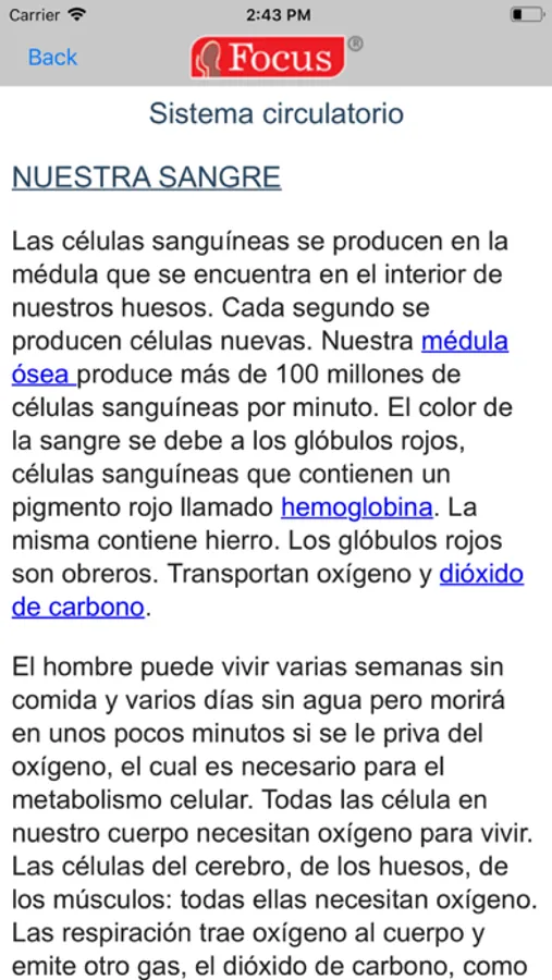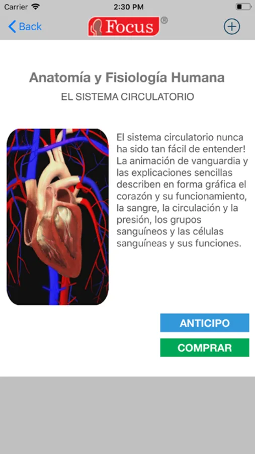 Esta aplicación incluye anticipos de las animaciones y descripciones del primer Atlas animado de anatomía y fisiología humanas. En este entretenido atlas anatómico animado por Focus Medica, se explican los sistemas humanos en forma gráfica por medio de animaciones acompañadas por una narración clara en español. Esto nos permite explorar la anatomía humana, identificar los órganos y conocer las ubicación y funciones de los mismos. Las animaciones maravillosas revelan El sistema esquelético y muscular, El sistema nervioso, El sistema circulatorio, El sistema respiratorio, El sistema digestivo y excretor y El sistema reproductor. Edad: A partir de los 8 años