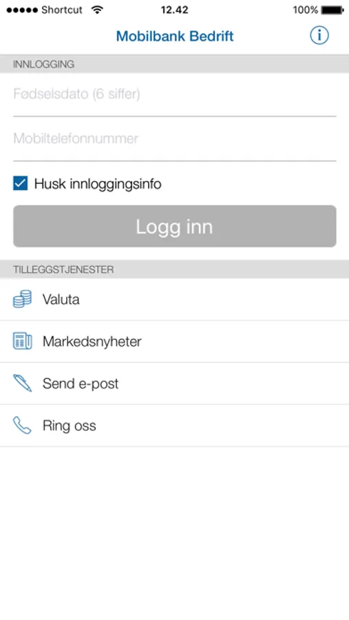 For å logge inn benyttes BankID på mobil, og det kreves tilgang til Nettbank Bedrift. BankID på mobil oppretter du i din private nettbank.
