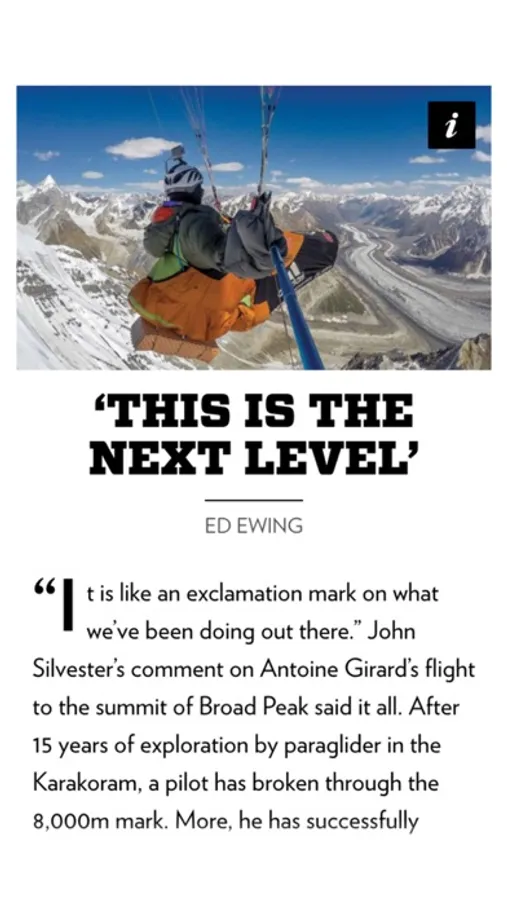 Cross Country magazine is one of the world's leading voices in paragliding and hang gliding – essential reading for any pilot who wants to fly longer, further, higher and more safely. Every two months we feature the best photography, writing, travel and free-flight adventure from around the world. Inside the magazine you'll find contributions on how to thermal and how to fly better from World Champions, Red Bull X-Alps athletes, Alpine flying guides, Flatlands gurus and a host of others who are at the forefront of the sport. The App recreates the magazine especially for the iPad, allowing you to read the full content without waiting for the postman. Cross Country’s soul is in the adventure and freedom of flying. As pilots, it’s a passion we share. Whether it’s intoxicating tales from Brazil or the Himalayas, first-hand accounts of record-breaking flights or simple stories of unexpected moments in this extraordinary sport, Cross Country aims to convey that feeling of being up there, in the moment, doing what we adore. Cross Country’s reviews meanwhile aim to get under the skin of the newest gliders to help you make a more informed choice. We also review harnesses, instruments and other essential new gear. Finally our news coverage and insightful comment on the latest happenings in the free flying world keep you up to date with this fast-moving sport. Subscribe if you can, and support the only international free flying magazine out there. Owned, run, written and photographed by pilots. Always has been, always will be.