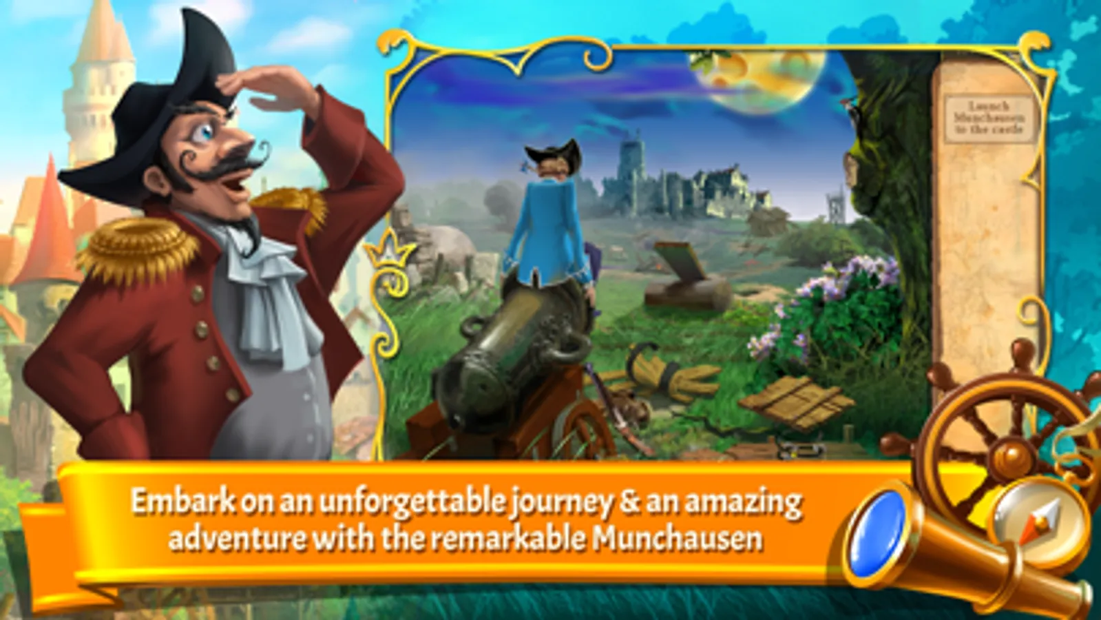 Desperate to save herself from eternal misery, Princess writes to the amazing Munchausen to come back to the Kingdom, defeat the villainous stranger and save the day! In this excellent combination of hidden object & adventure game play follow the would famous Munchausen as he unwraps the mystery of the evil stranger and brings peace and prosperity back to the Kingdom.