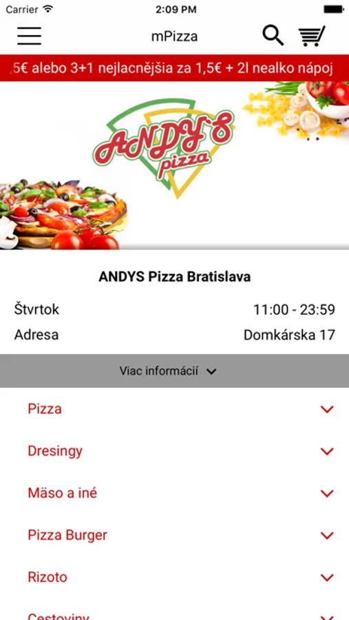 Objednajte si pizzu online z Vášho mobilného telefónu .. jednoducho a rýchlo. V aplikácii Andys Pizza nájdete kompletný rozvozový jedálny lístok. Prehľadne môžete vybrať miesto rozvozu v Bratislave a širokom okolí.