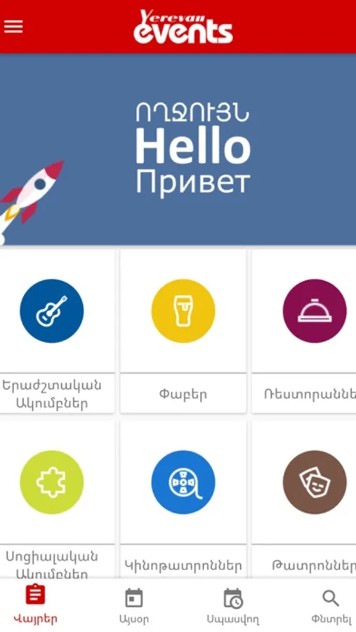 Discover events happening in Yerevan city. Explore events by your interests including exhibitions, sports, parties, meetups, concerts, festivals, workshops, dance, art and theater etc. Follow your favorite venues and get notified whenever they announce new events.