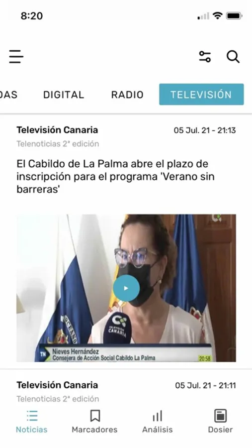 iMetrópolis le permite consultar el seguimiento de medios de la actualidad canaria.