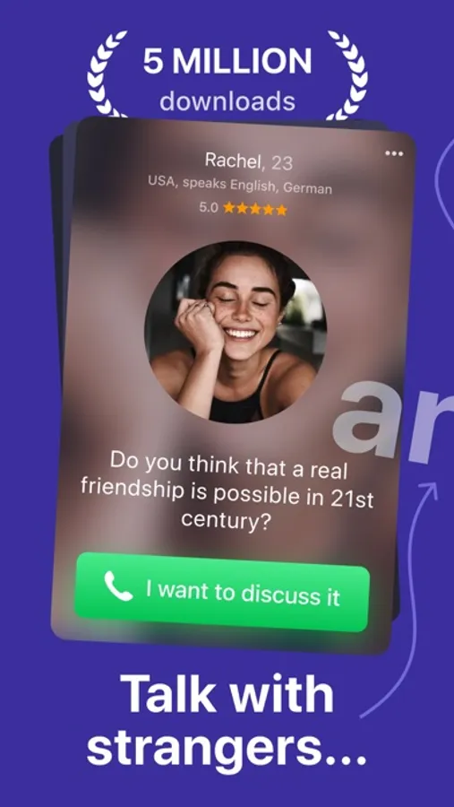 Tap a button and talk to people 24/7 in the easiest way possible, share true emotions and get instant reactions, have fun and get rid of boredom in a place where friendship happens or practice a foreign language all day long.