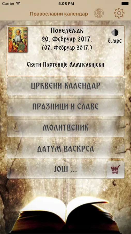- The church calendar, for the period between 2012. and current year, with daily date review according to Gregorian and Julian calendar, the moon phases and fast types. The church calendar automatically adjusts moveable holidays and fasts for every year according to Easter as well as the moon phases.