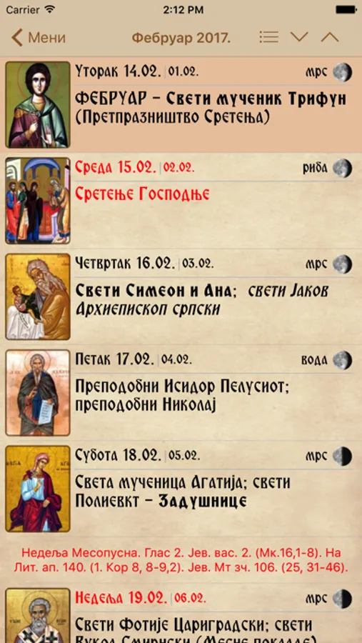 - Praznike i krsne slave. Svaki praznik i krsna slava, osim datuma sadrže i ikonu kao i žitije sveca.