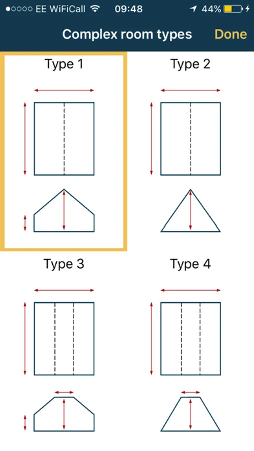 • For ‘complex rooms’, rooms with lofted/vaulted ceilings and roof an option to select which image profile, so measurement and wall types can quickly be entered.