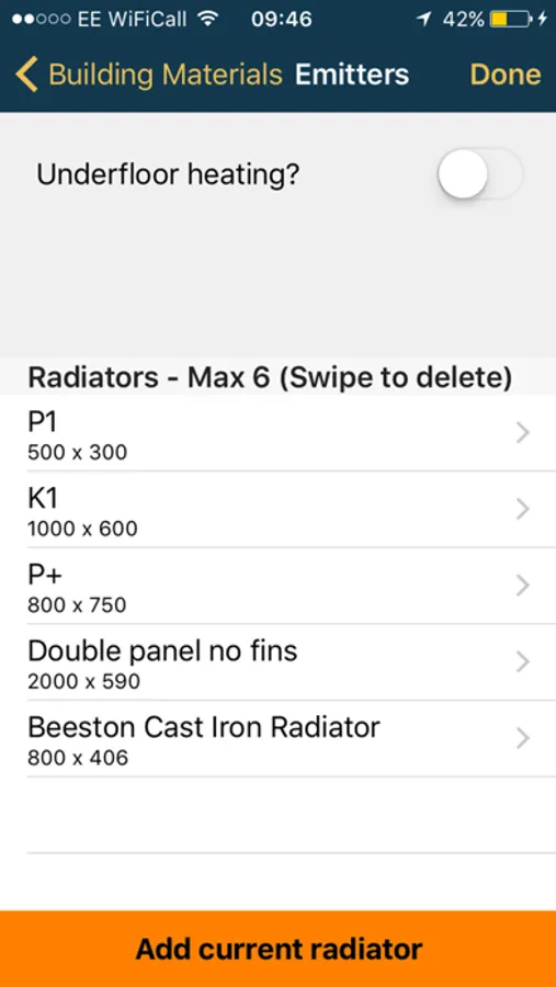 • Current Emitter selection, quickly select the radiator profile image from our list and enter the height and length. Heat Engineer online www.heat-engineer.com will calculate the output based on the designed flow temperature in the final report.