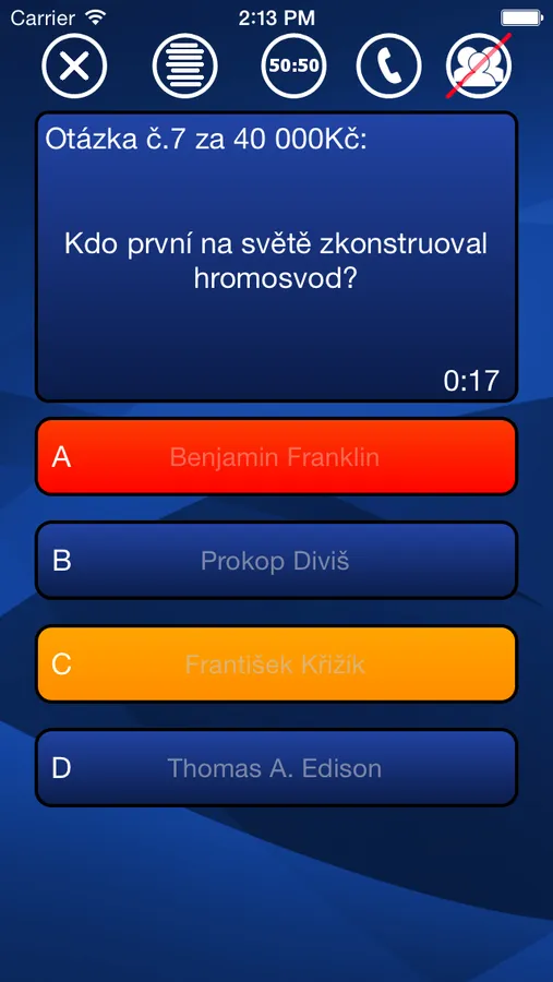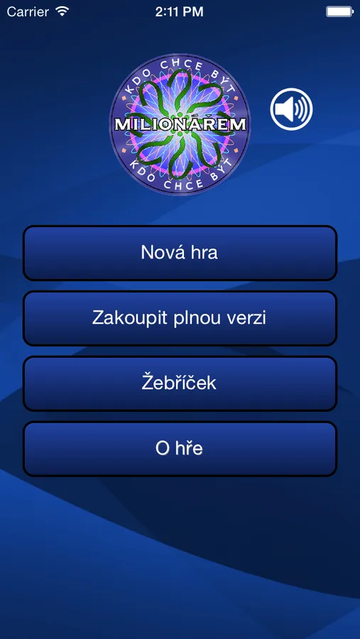 Aplikace je zdarma v trial verzi. Prvních 8 otázek si může vyzkoušet každý. Pokud chcete plnou hru, tak musíte využít In-App nákupu a z menu aplikaci si zakoupit plnou hru a pak již budete mít neomezenou plně funkční hru (cena je stanovena na nejmenší možnou a to tedy 0.99 dolarů nebo 0.89 euro).