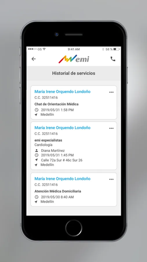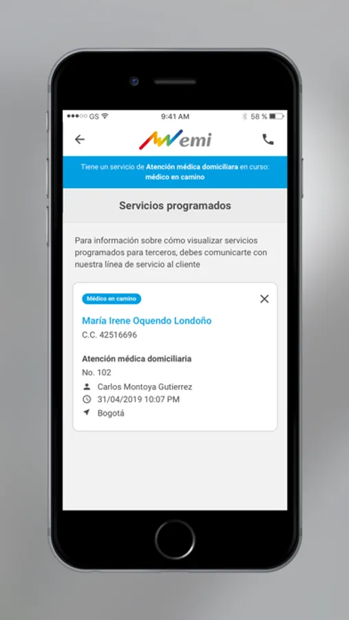 Con un clic en tu Smartphone puedes hablar por videollamada o chatear directamente con un Médico para resolver inquietudes sobre tu salud, solicitar en línea que nuestro equipo médico te atienda en tu domicilio, conocer tu historial de servicios médicos con nosotros, descargar tu historia clínica, visualizar tus servicios programados y actualizar tus datos cuando eres afiliado emi. Podrás agendar en tiempo real citas con nuestros Médicos Especialistas aliados, y además de conocer su geolocalización, puedes conocer cómo llegar desde tu ubicación.