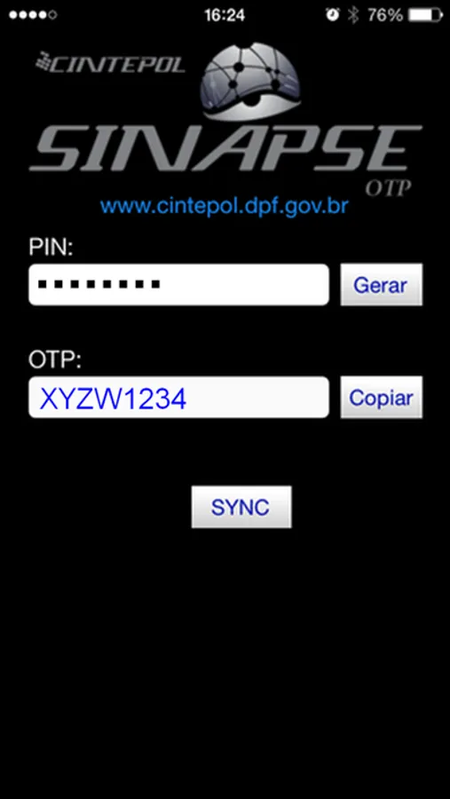 O usuário deve estar previamente cadastrado no Portal Sinapse. Após instalar esta App, envie e-mail para otp@cintepol.dpf.gov.br que um código Sync será enviado automaticamente para você. Informe esse código na App.