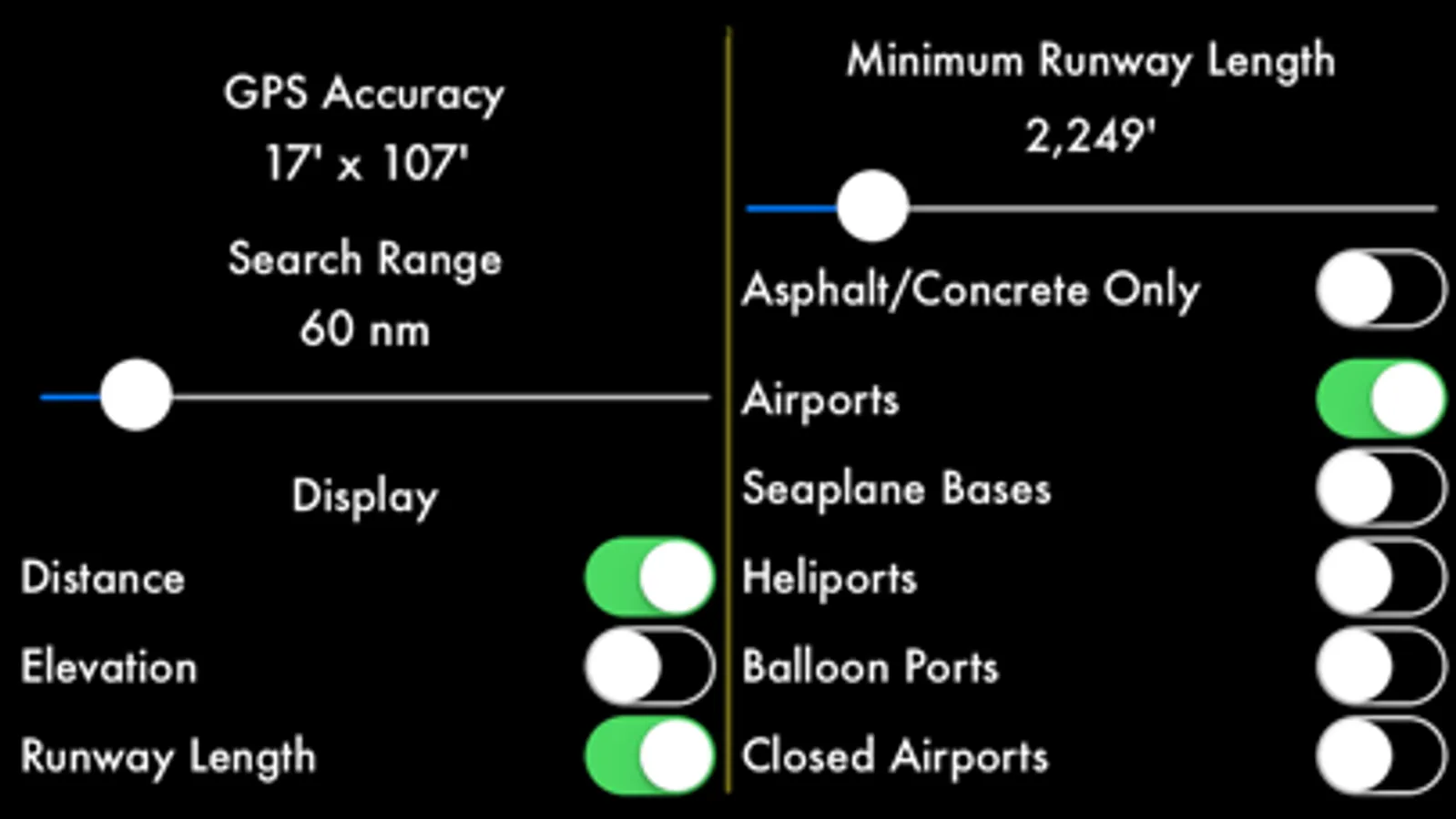 Augport is also useful on the ground where it can point you in the direction of nearby airports, heliports, balloon ports, seaplane bases and closed fields.