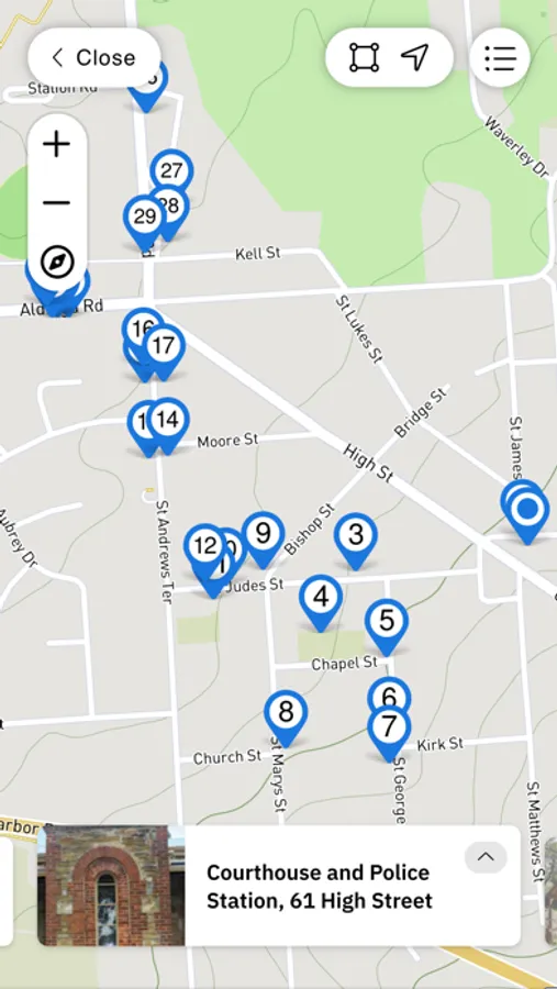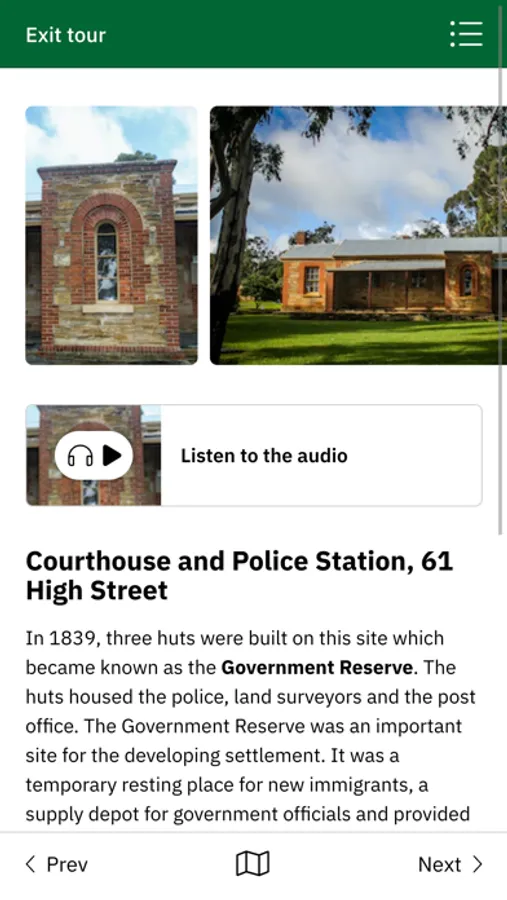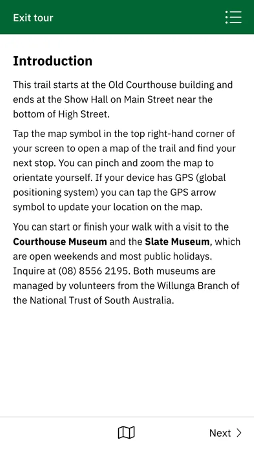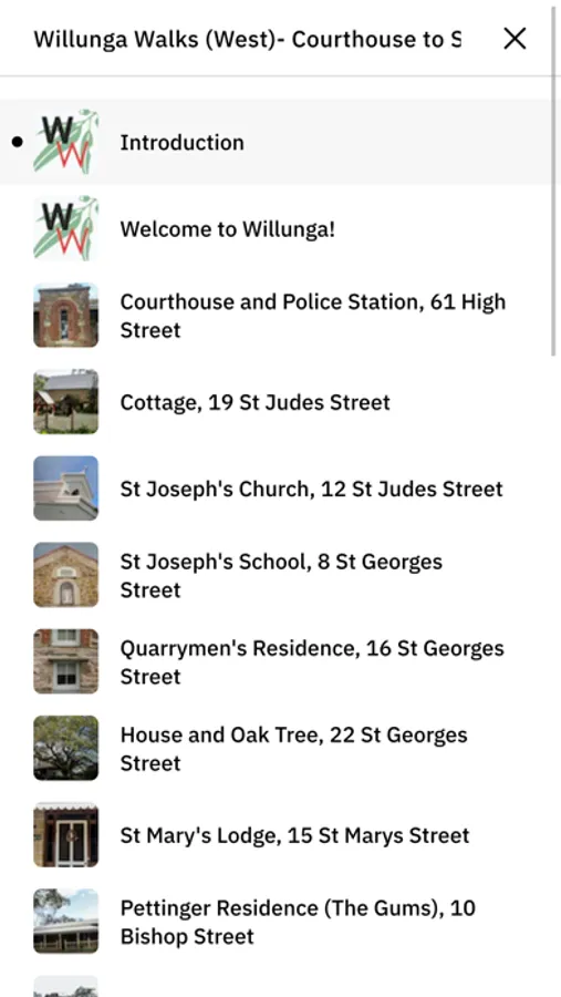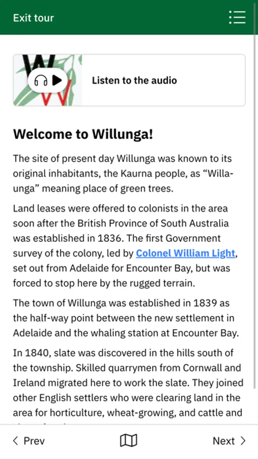 A mobile guide to the heritage places of Willunga, South Australia. This town has a number of significant and well preserved heritage sites and offers a unique record of early colonial life. As one of the earliest settlements in South Australia, Willunga boasts more than 20 heritage listed buildings, notable for their use of local materials such as slate and limestone.