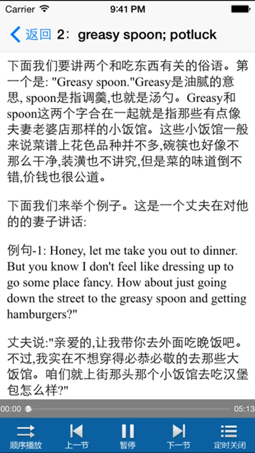 本软件收集了自美国习惯用语开播以来的所有内容,音频和文本相结合,给你一个好好学英语的机会。