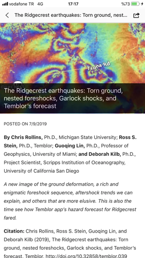 Following major or particularly notable quakes, Temblor rapidly publishes accurate post-event analyses to inform the public and support institutional and commercial responses. Temblor is an approved Google News source and has been cited in major news outlets.