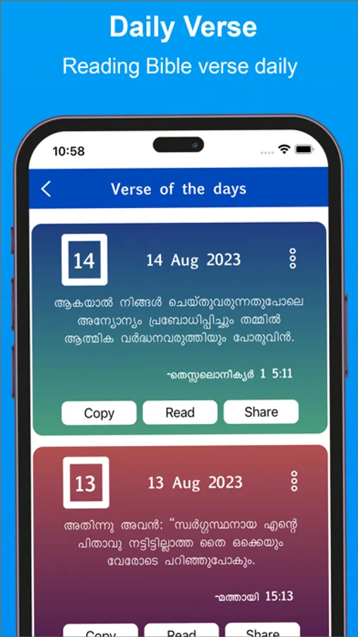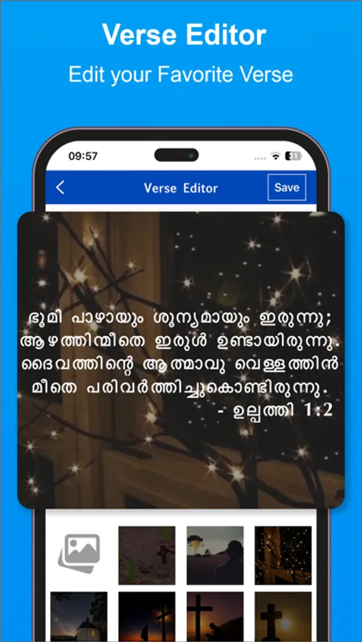 ● Share verses via multiple platforms with ease, like Facebook, Twitter, SMS, WhatsApp, Skype, etc..