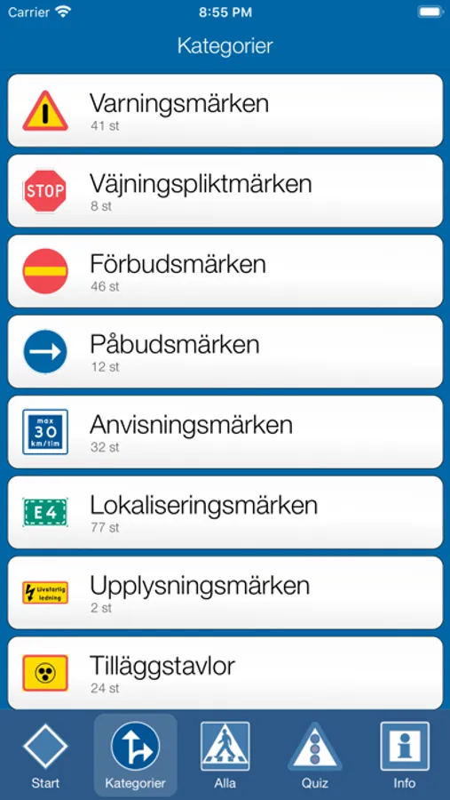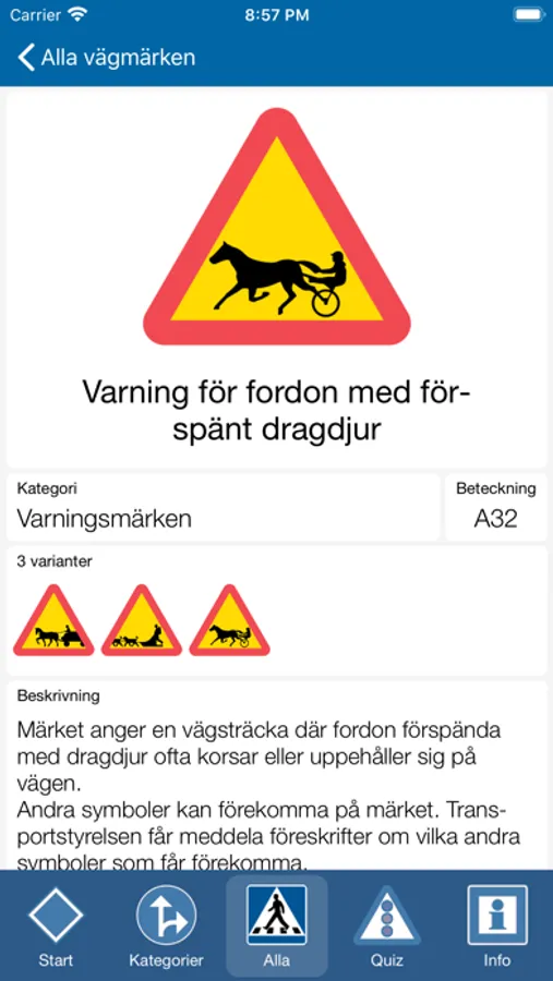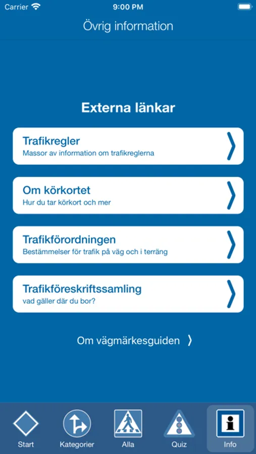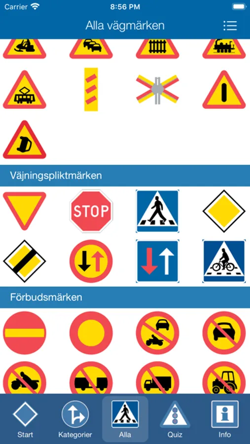 ● Den är nu uppdaterad med de senaste vägmärkena och tillhörande beskrivningar.