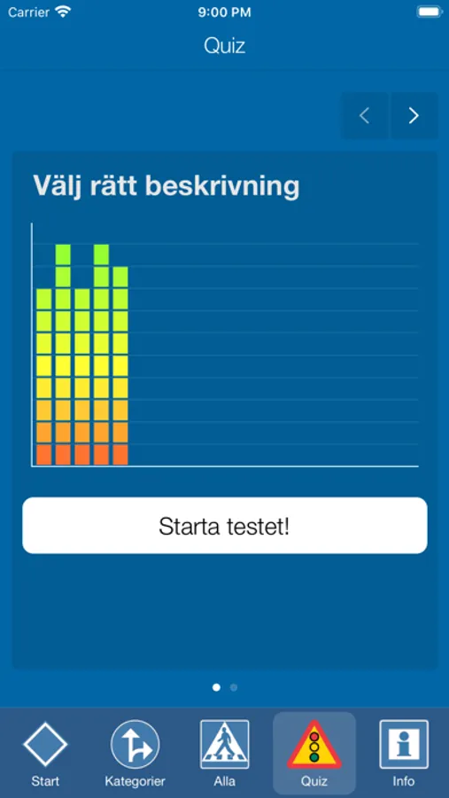 Det finns även tre olika sätt att lära in märkena. Dels via startsidan som automatiskt visar slumpmässiga märken med tillhörande titel, bara att titta och lära. Sedan finns två typer av quiz, där du antingen väljer passande beskrivning för ett visst märke, eller väljer passande märke för en viss beskrivning. Du får statistik över hur många rätt du haft.