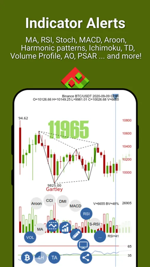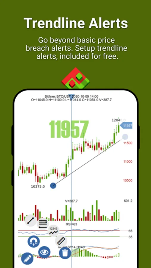 - Intelligent Alerts: Do you want to be notified when the current trend has a higher-than-normal probability of switching directions? Simply set up Parabolic SAR alert. Or, get notified via a Stochastic RSI alert when the market becomes overbought or oversold. MACD alerts fire each time a center line or signal line crossover occurs. Don't forget to setup an alert that fires when the Bollinger Bands are breached!
