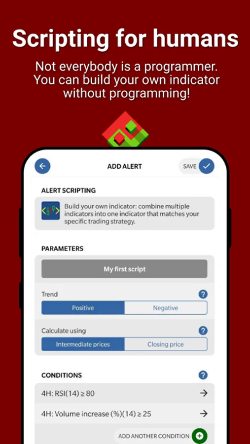 - Not everybody is a programmer. Build your own indicator without programming, optionally spanning multiple charting periods.