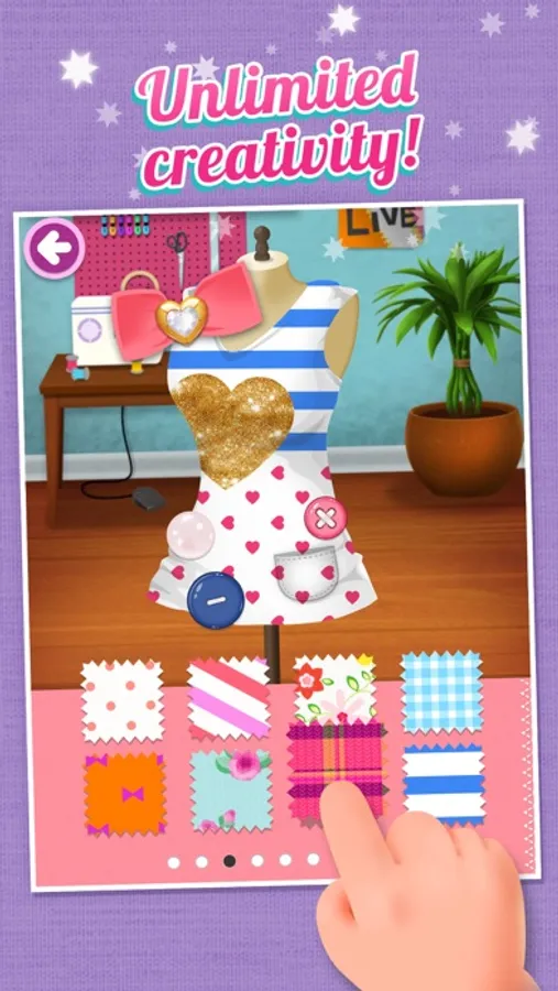 - Play around with 32 design accessories - buttons, graphic prints, pockets, and lots more!