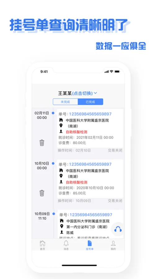4、挂号单查询。