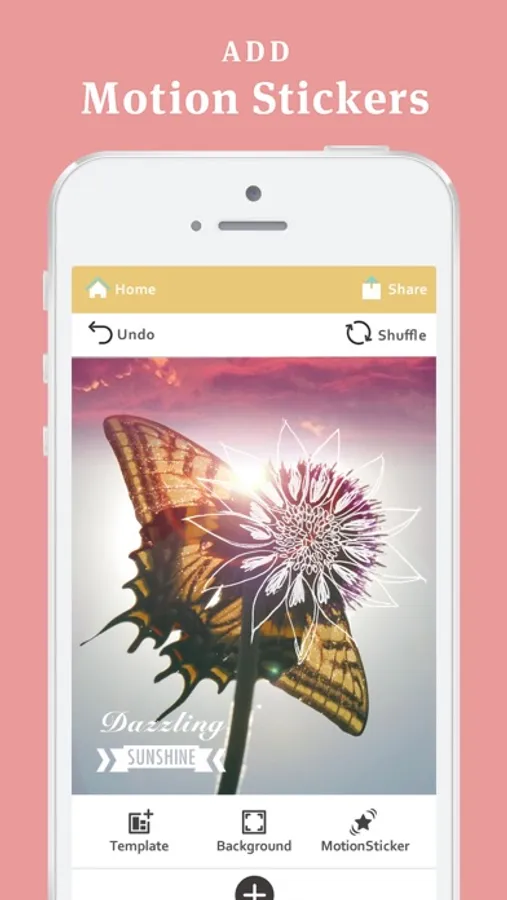 The Shuffle button randomly replaces all items: photos, Motion Stickers and even backgrounds. Revel in the unexpected!