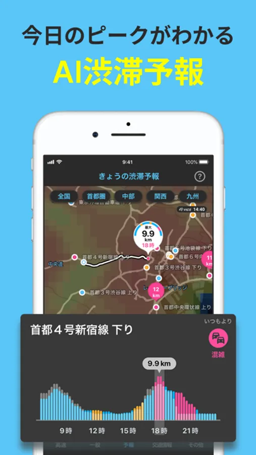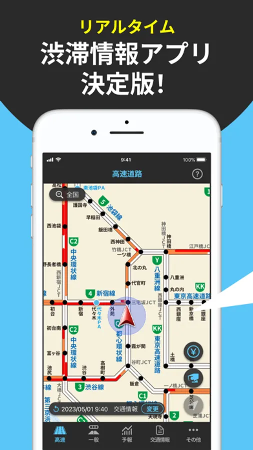 カンタン検索とサクサク動作で、全国の高速道路と一般道路のリアルタイム渋滞情報をチェック!