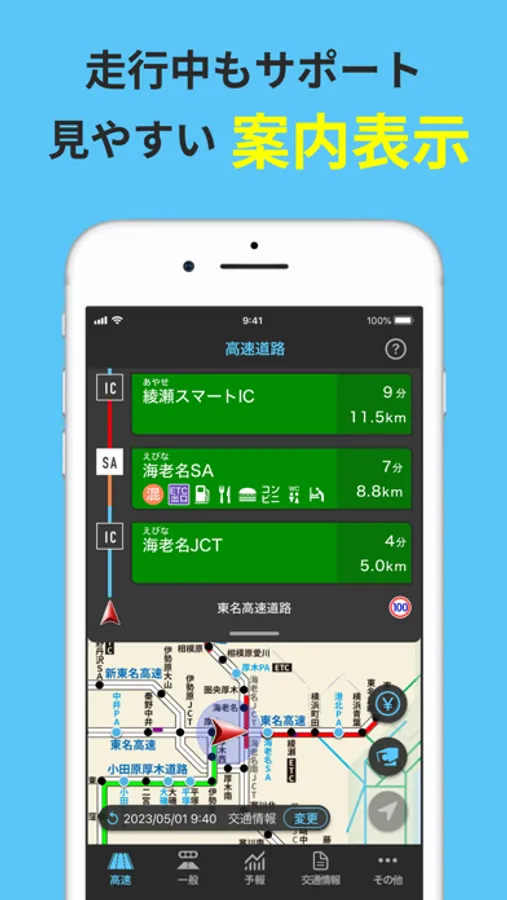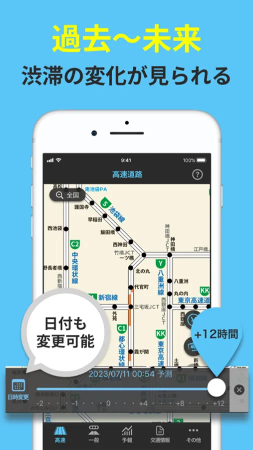 ・高速マップでは最大8時間先の渋滞・混雑予測情報が表示できます。