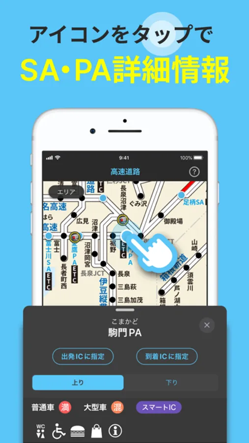 ・高速マップ上にて、IC規制アイコンを表示するようにし、タップで規制情報を確認できます。