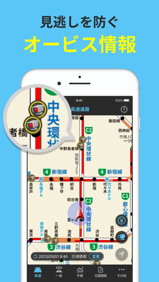 ・高速マップ上にて、地図上の交通情報線をタップすることで詳細な情報を確認できます。
