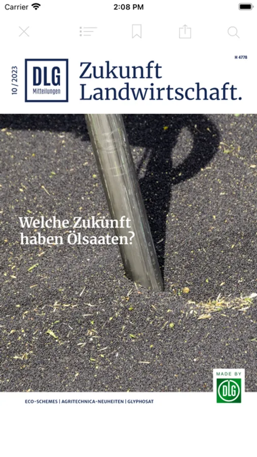 The DLG-Mitteilungen app is free. Those with a print subscription have iPad access included. The one-time log-on requires only your subscription number: to be found on the address label of your delivered DLG-Mitteilungen. Type it in, and you’re all set for immediate mobile access.