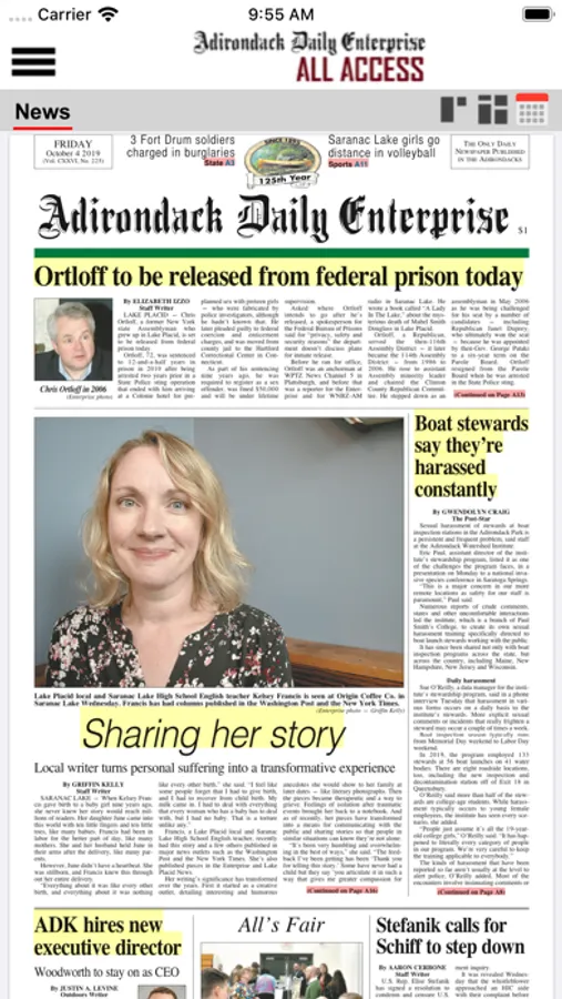 Stay on top of news from Saranac Lake and surrounding areas by receiving the full print version of the Adirondack Daily Enterprise on your iPhone or iPad. Every page of every edition is delivered to your device. The Daily Enterprise is the best source for local and national news, sports, weather and features in the Saranac Lake region of upstate New York including Franklin and Essex counties. Download the app to view the printed pages of the newspaper or read headlines and stories along with related photos in a built-in story viewer.