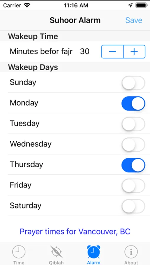 Wither fasting specific days of the week or fasting the whole month of Ramadan, Suhoor Alarm is a smart tool that keeps watching the changes in Fajr time and will wake you up at any desired minutes before Fajr.