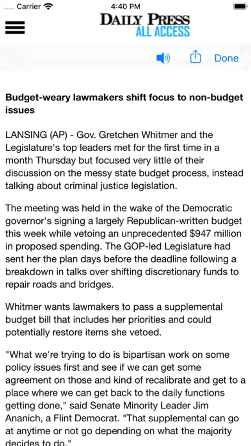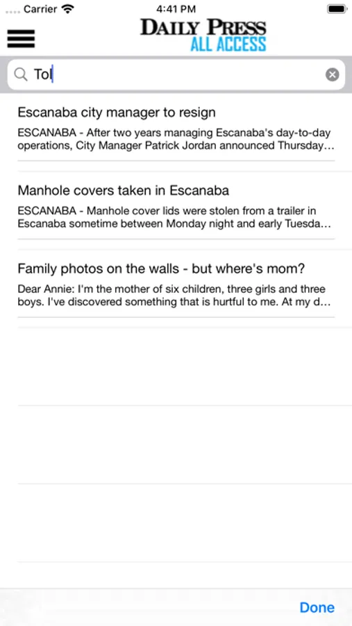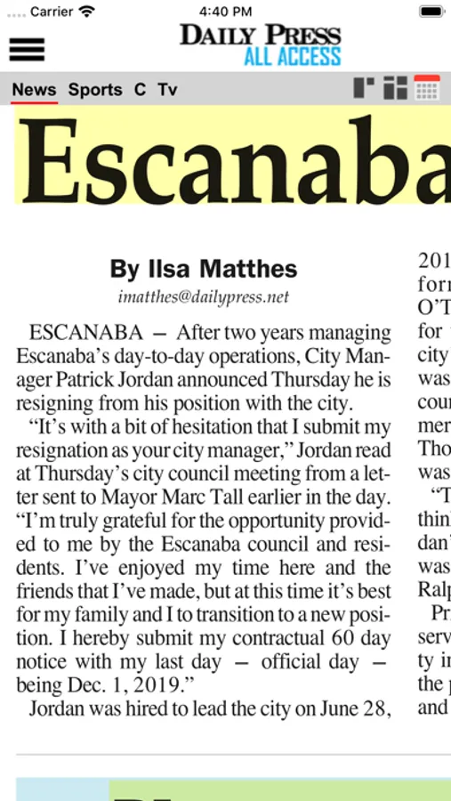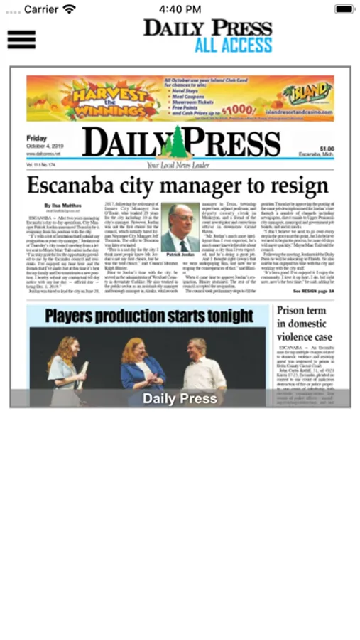 Stay on top of news from Escanaba and surrounding areas by receiving the full print version of the Daily Press on your iPhone or iPad. Every page of every edition is delivered to your device. The Daily Press is the best source for local and national news, sports, weather and features in the Escanaba and North-Central Upper Peninsula area of Michigan. Download the app to view the printed pages of the newspaper or read headlines and stories along with related photos in a built-in story viewer.