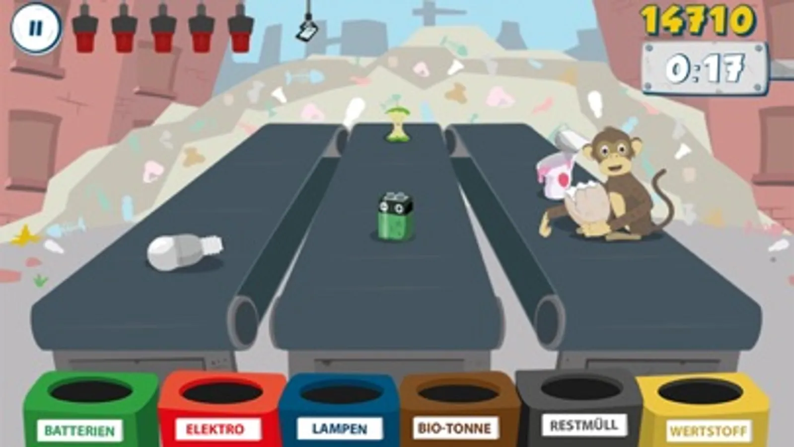 Mit jeder richtigen Zuordnung der verschiedenen Gegenstände in die dafür vorgesehenen Sammelboxen oder Tonnen sammelst Du Punkte. Tierische Rohstoffdiebe erschweren Dir die Aufgabe. Für das drag&drop-basierte Spiel ist nicht nur Geschicklichkeit erforderlich, sondern auch das Wissen über die richtigen Entsorgungswege.