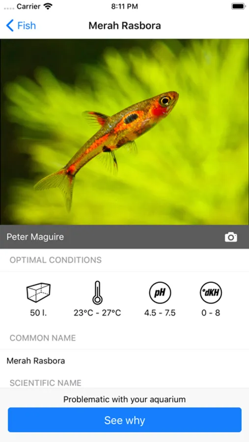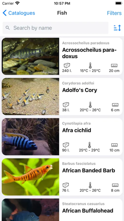 This app helps you select the fish, plants, crustaceans and snails for your aquarium.