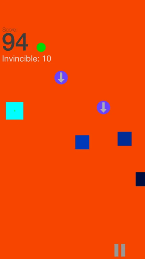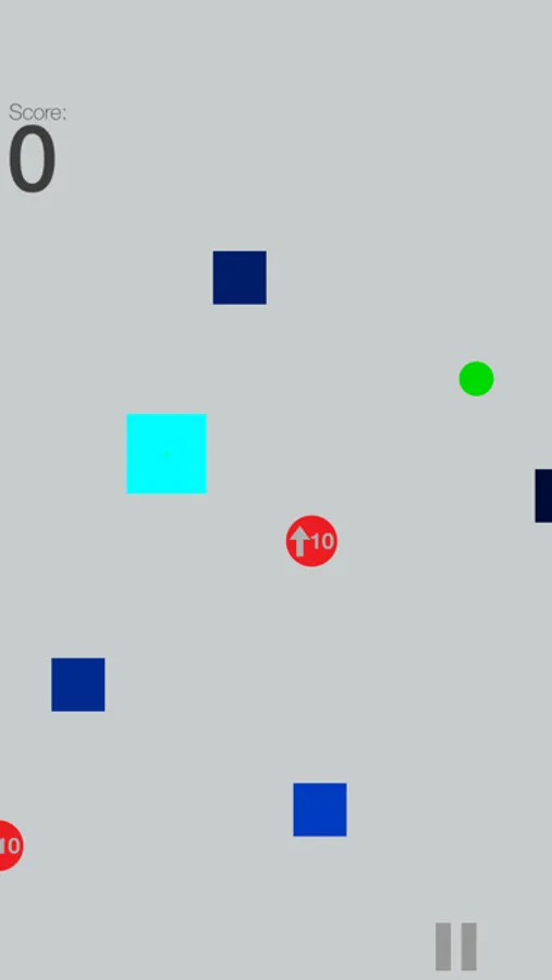 Green circles add one point, but make you slightly bigger; red circles add ten points, but make you grow faster; purple circles shrink your size; blue squares end the game.