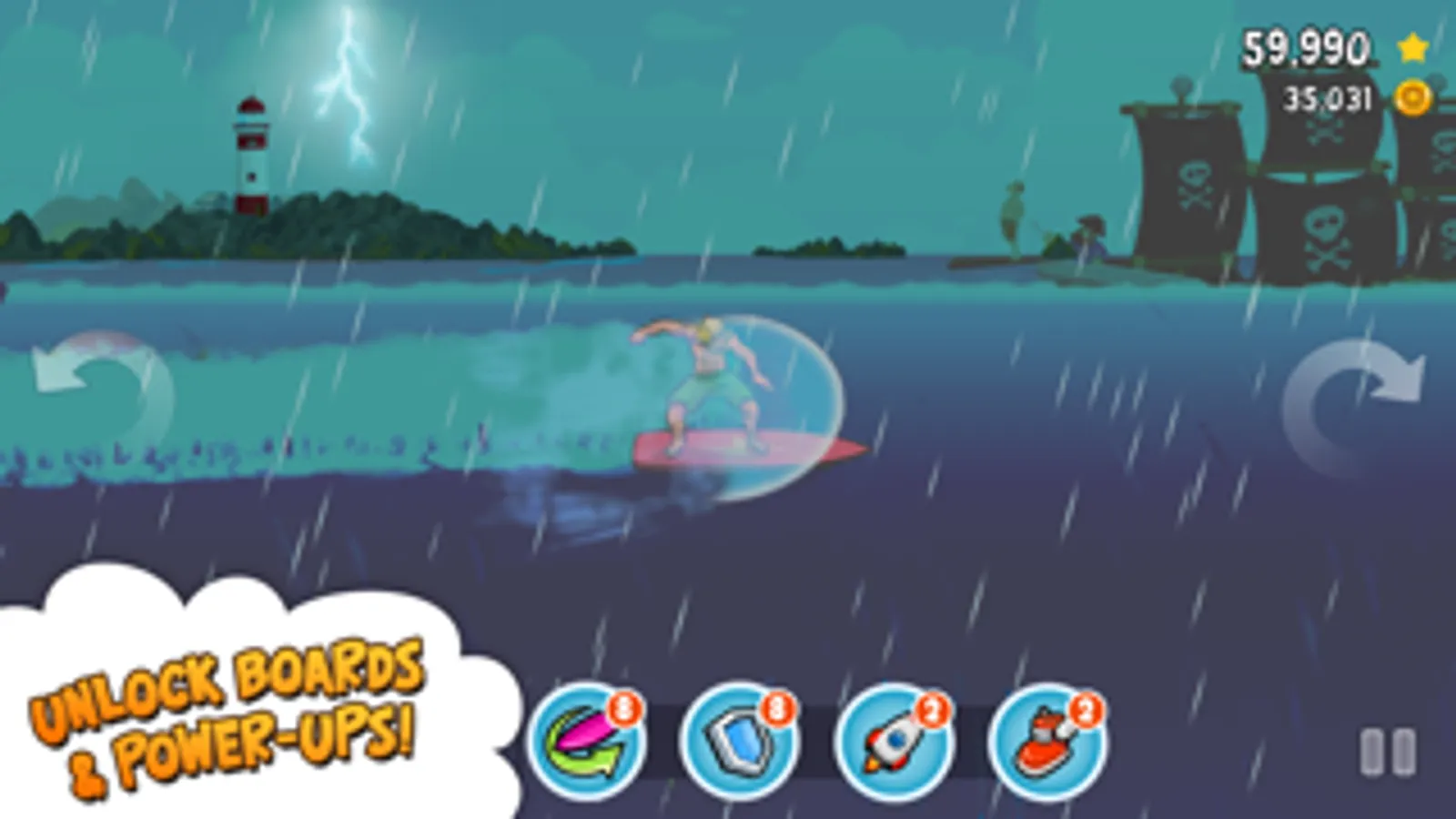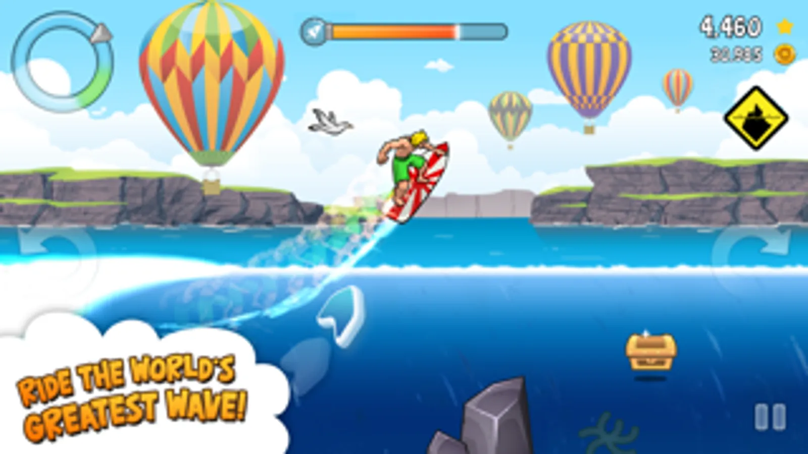 Surfs up! Land amazing tricks, collect power-ups and avoid a wipe out in this addictive, turbo charged surfing side-scroller.