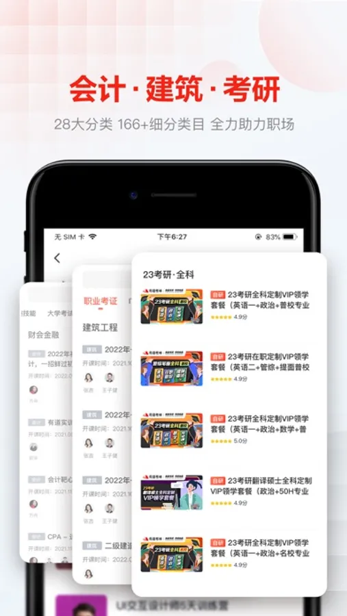 - 职业考证:二级建造师、一级建造师、注册会计师、初级会计、中级会计、公共营养师