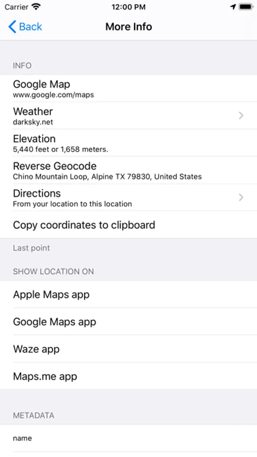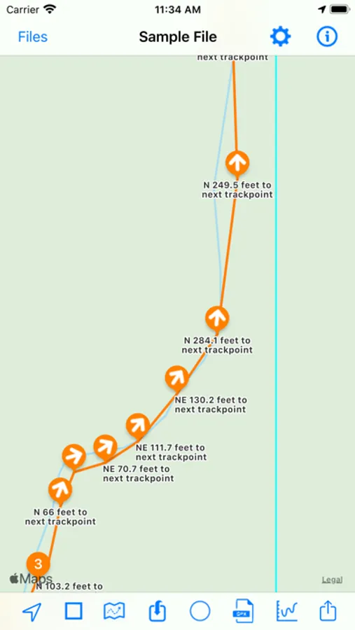 - Send the waypoints to various map apps such as Apple and Google Maps.